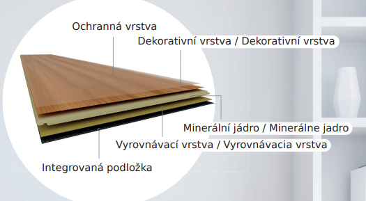 Podlaha disponuje integrovanou podložkou o tloušťce 1,5 mm.