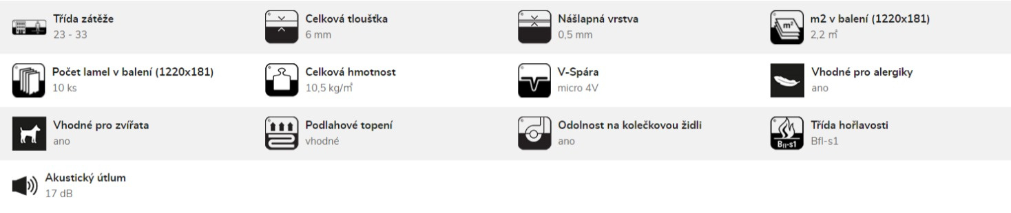 Nejen pořádná nášlapná vrstva zajišťuje dlouhou životnost podlahy. Je to i její minerální jádro a celková tloušťka 6 mm, které se starají o její stabilitu a rozměrovou stálost. Bonusem je pak vhodnost pro podlahové vytápění.