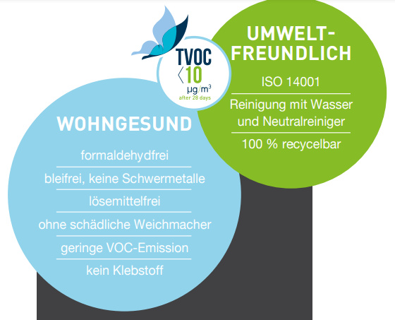 TVOC Míra emisí po 28 dnech ISO 16000-6 µg/m: 3 < 100* (* Norm: < 1000 µg/m)