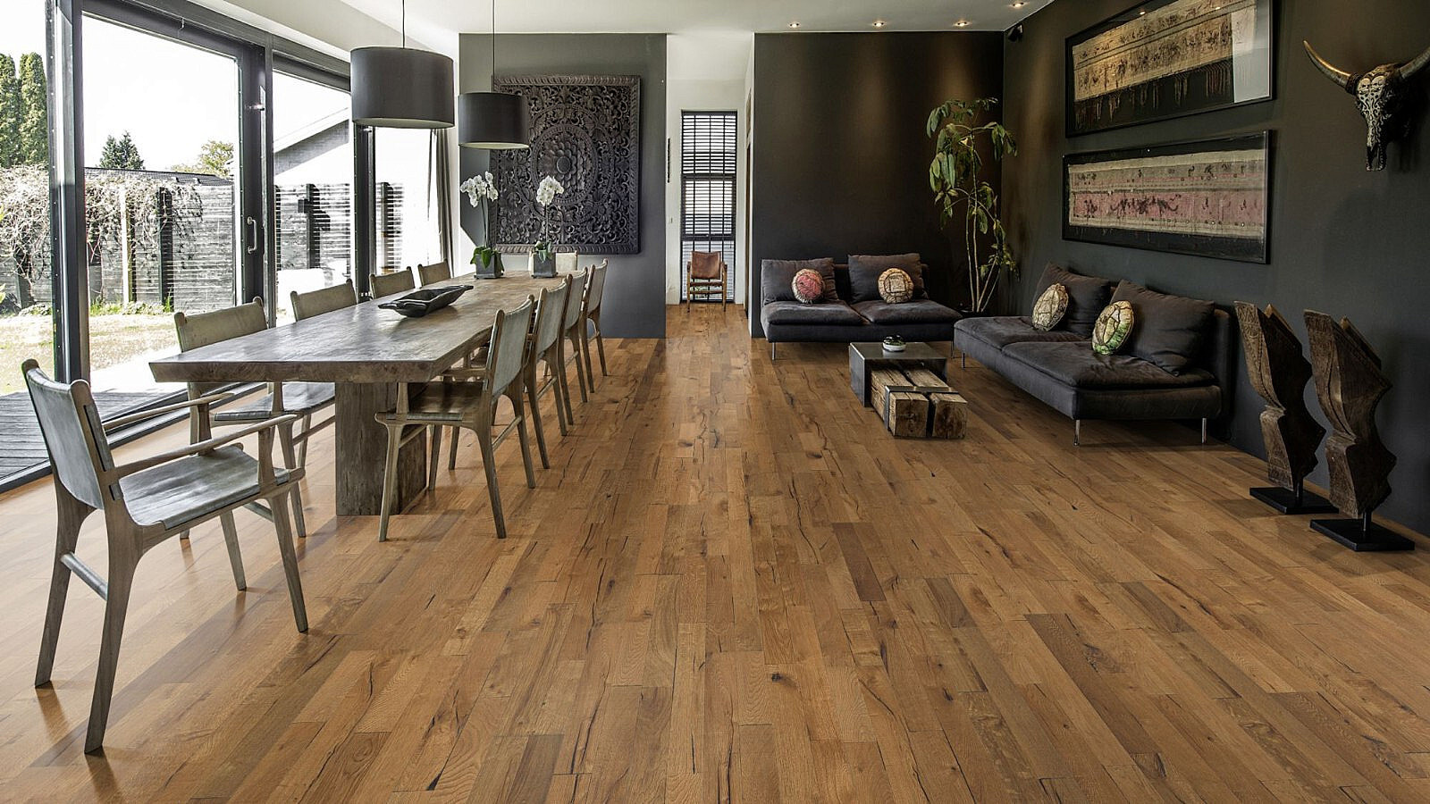 Čtyřstranné zkosení zajišťuje klasický vzhled a dojem z celých prken. Každá deska je pečlivě ručně opracována, což umocňuje vzhled starého dřeva.