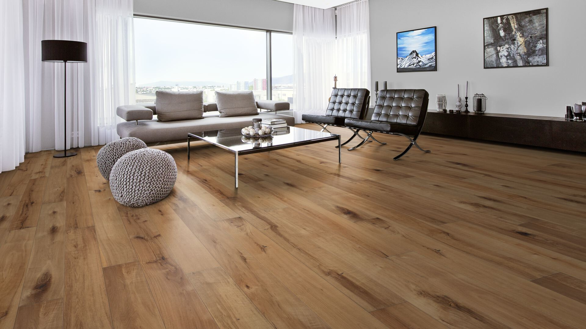 Jednolamelové podlahy se perfektně hodí do větších prostor, povrch je řezán z jednoho kusu dřeva, čímž je zdůrazněna jeho přirozená krása a struktura.