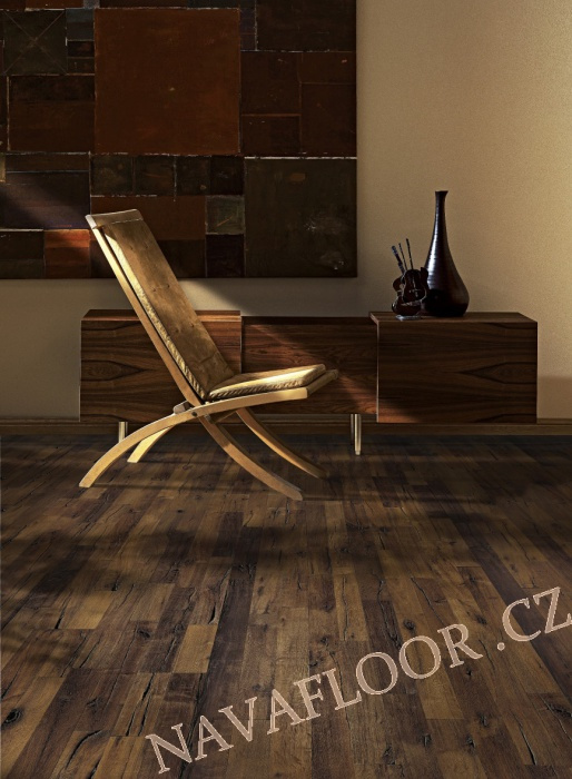 Nerovnoměrným ručně hoblovaným povrchem je dosaženo zcela originálního vzhledu na způsob starých prkenných podlah.