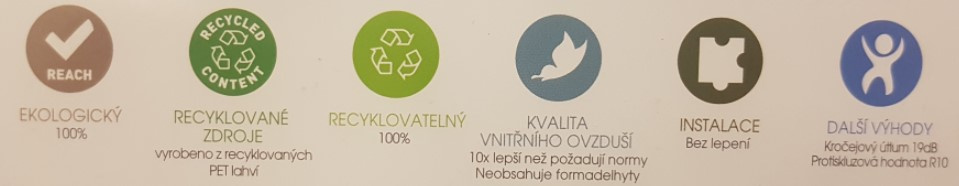- Eco-friendly =>textilní podložka vyrobená z recyklovaných PET lahví
