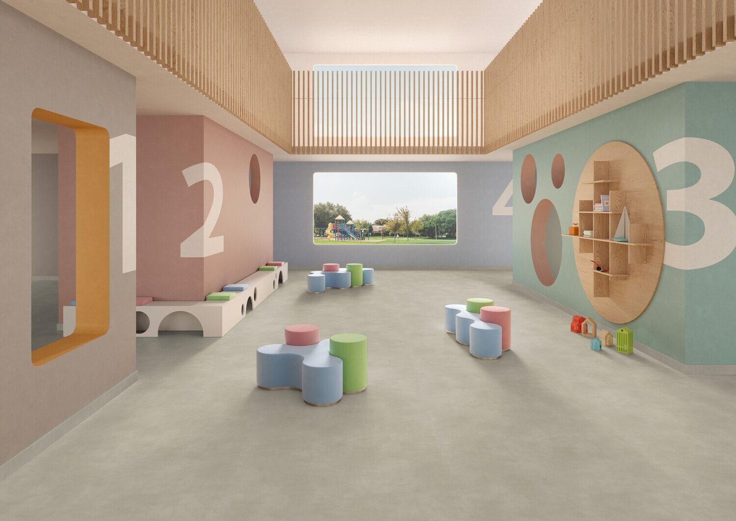 - Kombinace odolnosti, akustického tlumení a snadného užívání