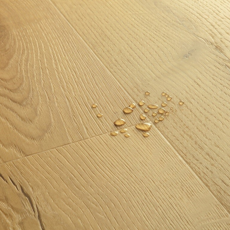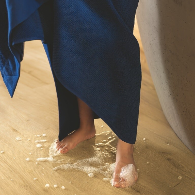 Vodu odpuzující povrchová vrstva HydroSeal zajišťuje, že do podlahy nevnikne žádná voda.