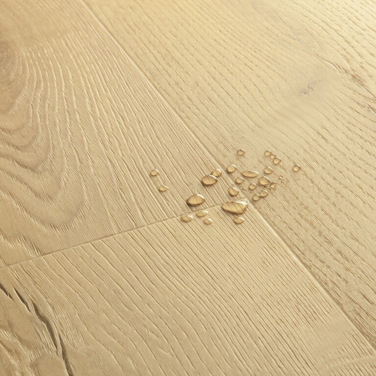 Vodu odpuzující povrchová vrstva HydroSeal zajišťuje, že do podlahy nevnikne žádná voda.