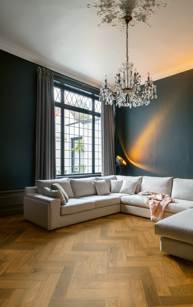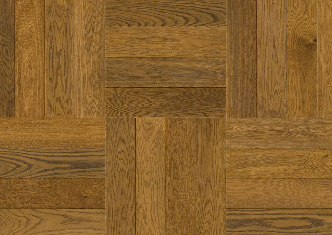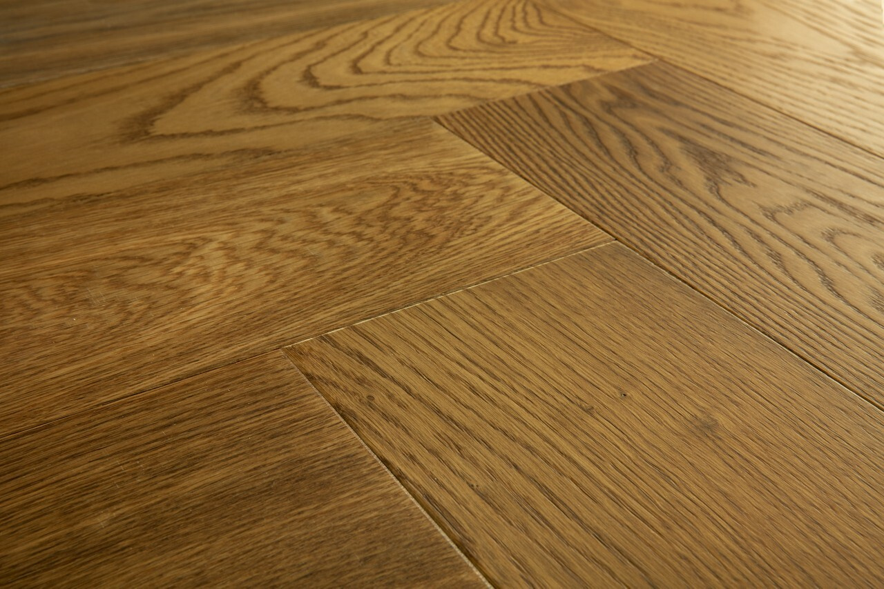 Tato dřevěná podlaha s vzorem rybí kosti kombinuje eleganci, přírodní vzhled dubu a funkčnost. Dokonale se hodí jak do klasických interiérů, tak do moderních designů a dodává místnostem jedinečný charakter.
