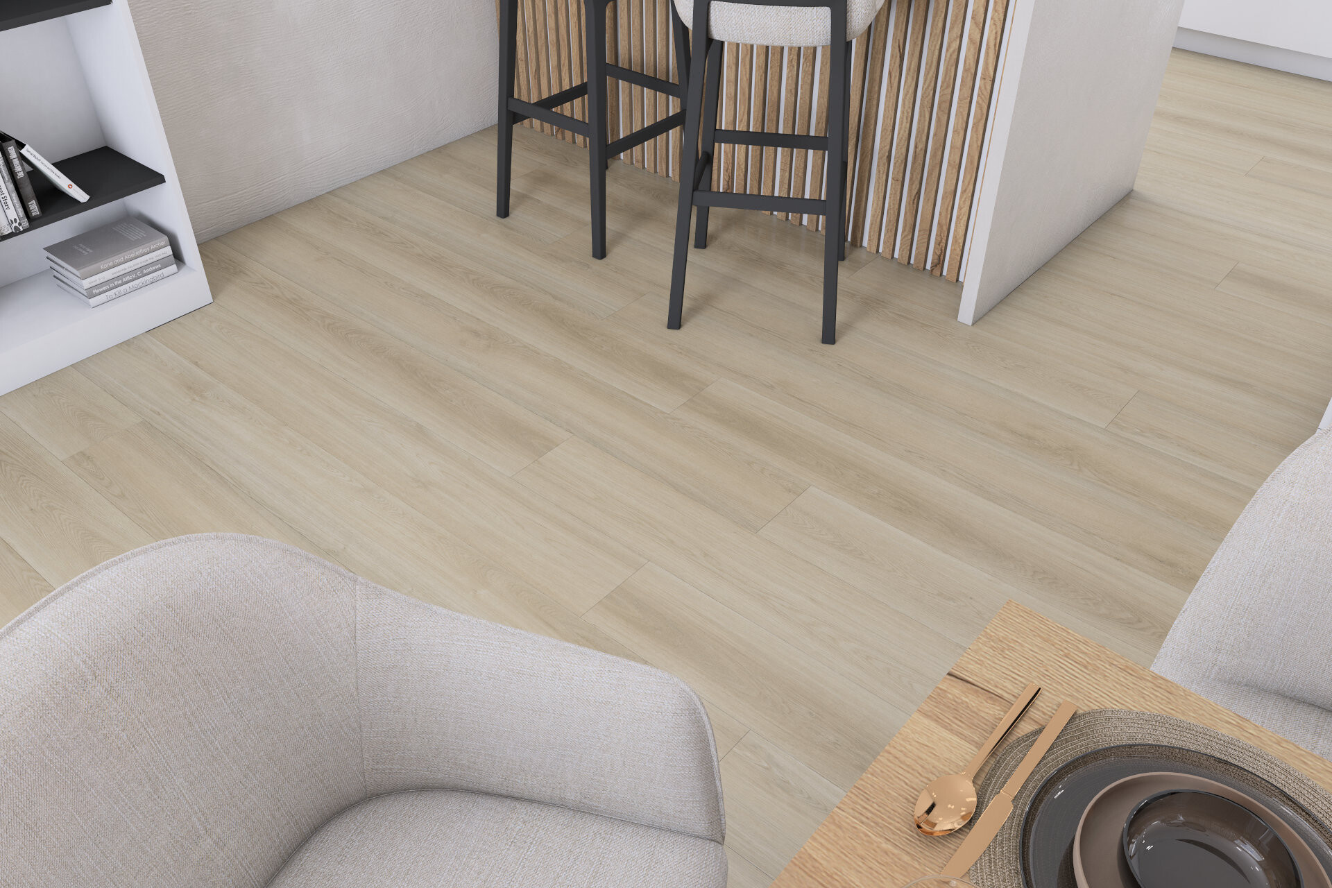 Tento materiál je možné pokládat i do místností, kde častěji dochází ke kontaktu vody s podlahou jako jsou koupelny nebo kuchyně. V takových případech totiž podlaha Merit SPC nenabobtná. Důležité je však myslet na správné provedení pokládky, aby voda nepronikala pod podlahovou krytinu a nevznikala možnost k vytváření plísní, tím pádem