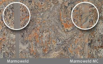 Plně barevná svařovací šňůra – Marmoweld. Plně barevné sváry lze použít k vytvoření neviditelných nebo dekorativních spár.