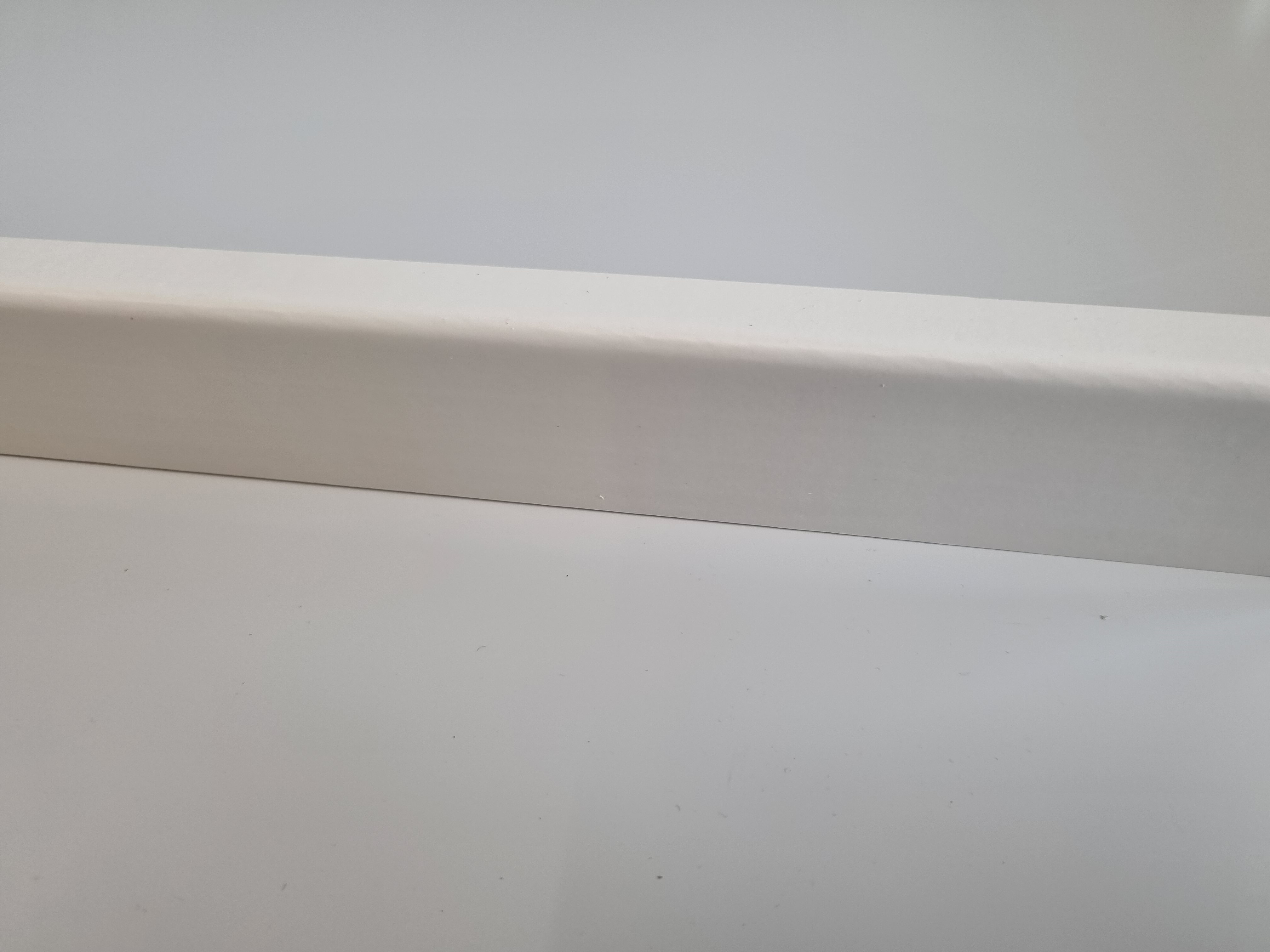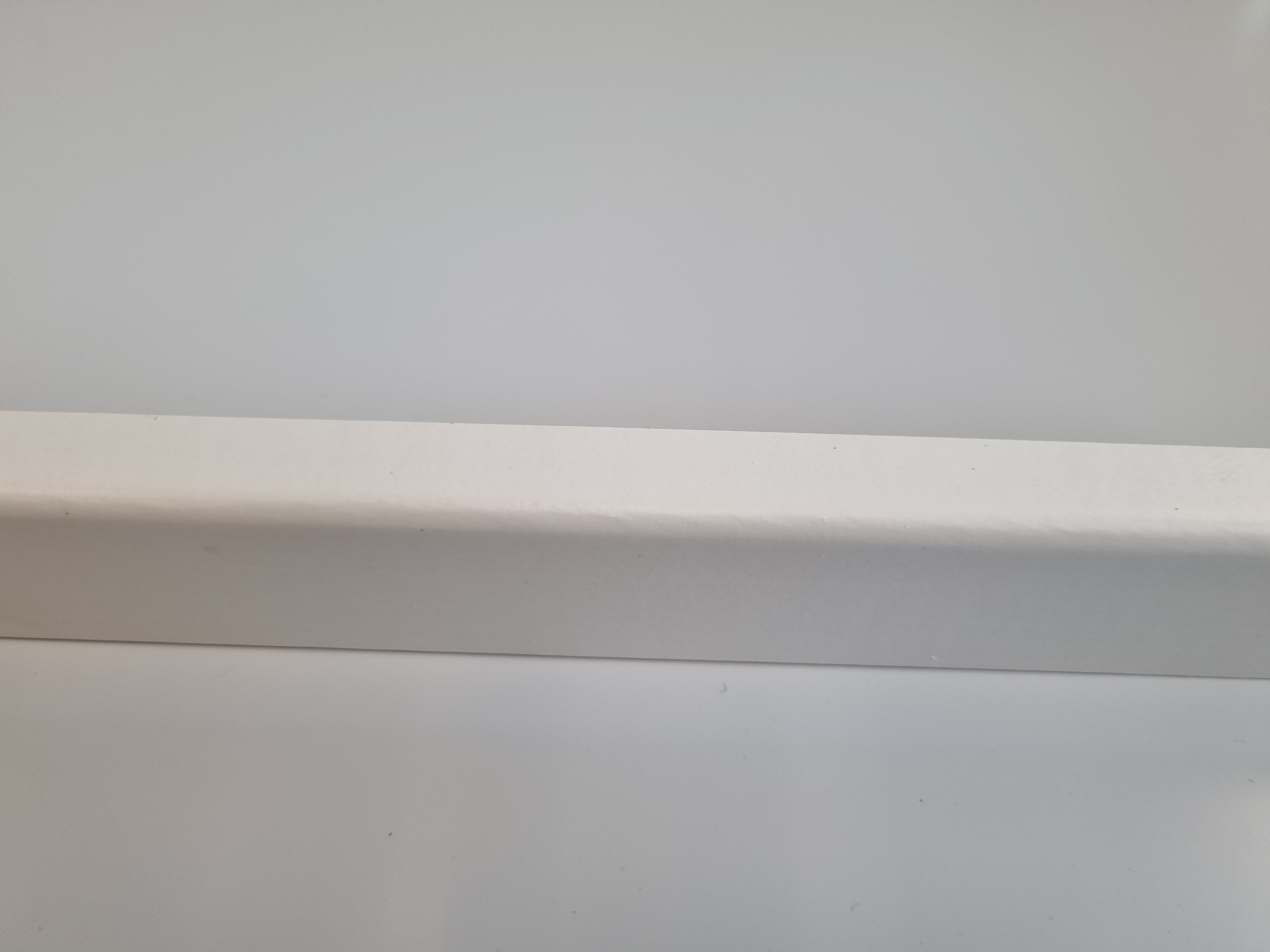 Soklová lišta se smrkovým jádrem obalená bílou folií. Lišta je určena k zakončení podlah u stěn, k překrytí dilatačních spár. K uchycení lišty ke stěně použijte vhodné lepidlo.