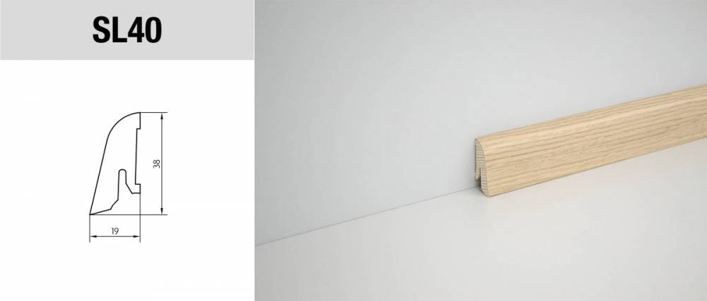 Soklová lišta se smrkovým jádrem obalená dřevěnou dýhou. Lišta je určena k zakončení podlah u stěn, k překrytí dilatačních spár. K uchycení lišty ke stěně použijte vhodné lepidlo nebo úchytky, které umožňují opětovnou montáž a demontáž lišt.