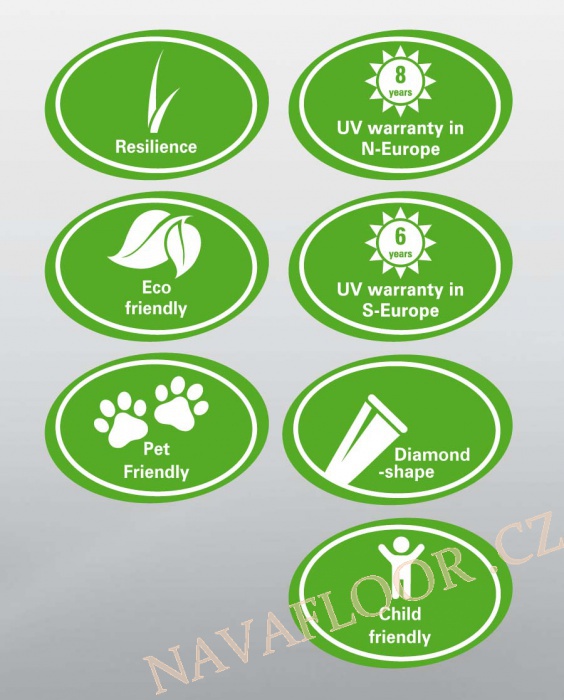 Umělý travní koberec Terraza holandské kvality s 18 mm vysokým vlasem je vyroben z velmi odolného materiálu. Příjemný na dotek. Terraza se hodí do venkovních i krytých prostor, kolem bazénů, na terasy apod.